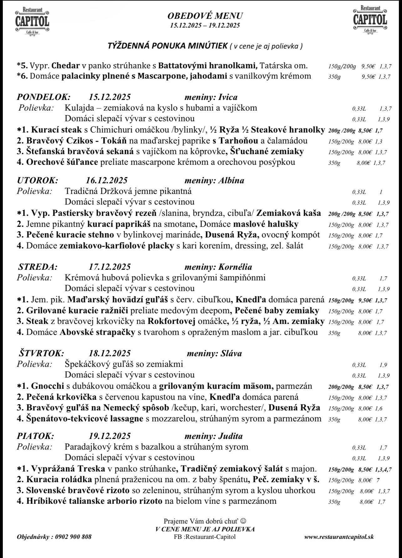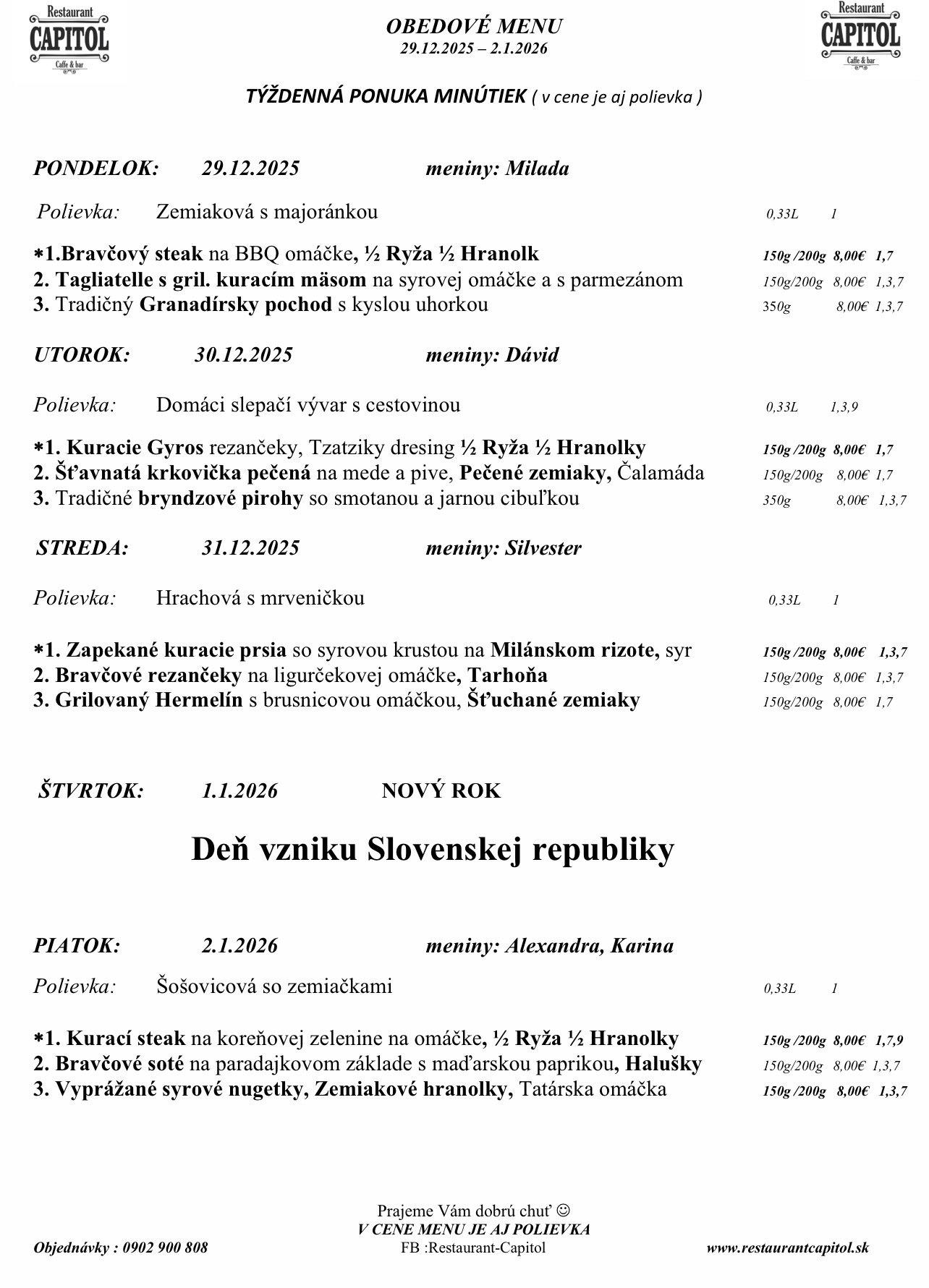 DENNE fotografie jednodlivých jedál z denného menu pre Váš jednoduchší výber .