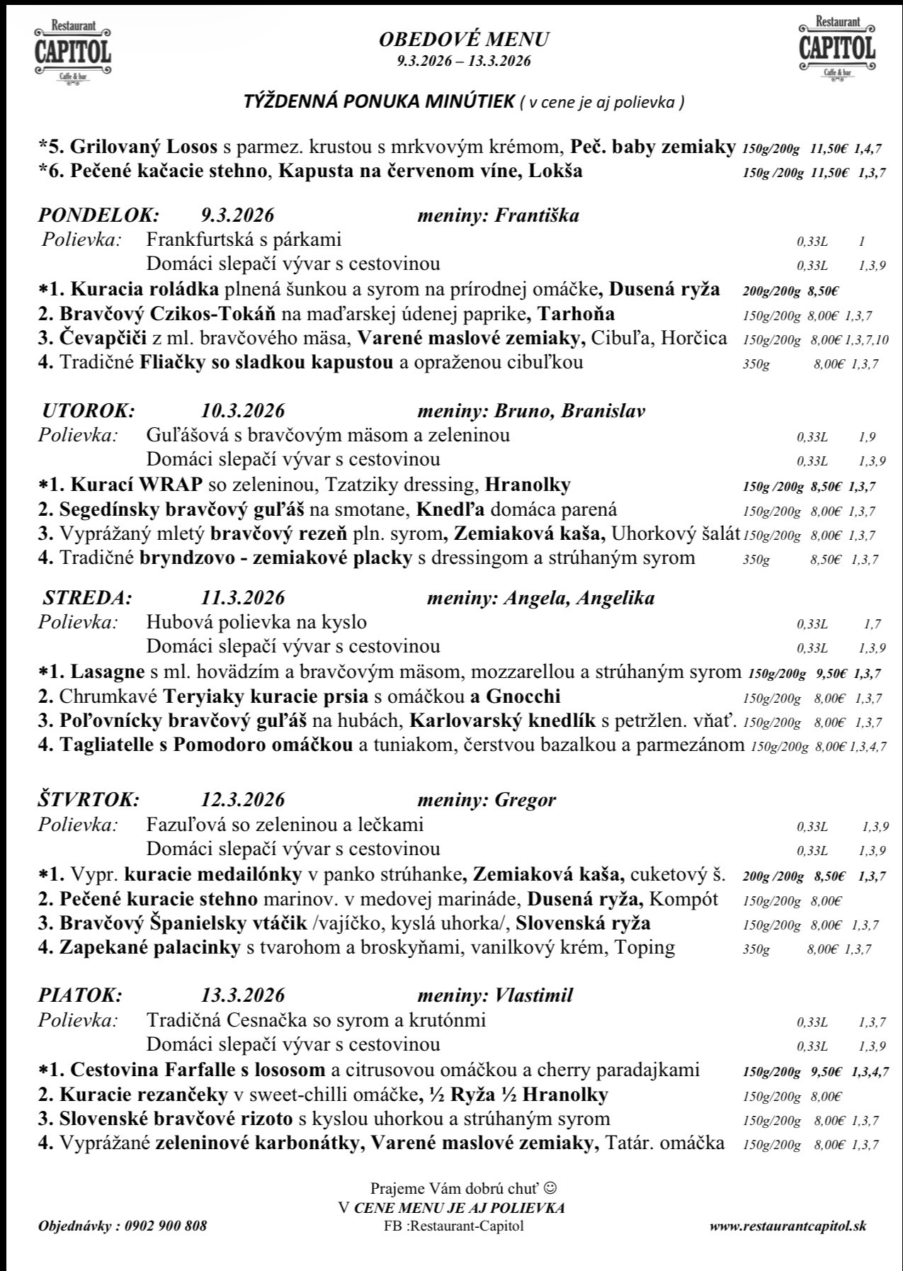 Od pondelka do piatku od 10:30 do 15:00 denné menu našej poctivej kuchyne. Kliknite si na fotku na priblíženie.